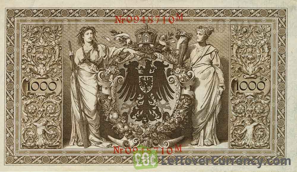 The red sealed 1000 Mark Reichsbanknotes dated 1910 were printed until the end of World War I. This is a crucial piece of information when it comes to valuing them. Their value was not covered by gold reserves. These banknotes were printed in very large quantities to fund the war.Hyperinflation wipes away the value of the Mark