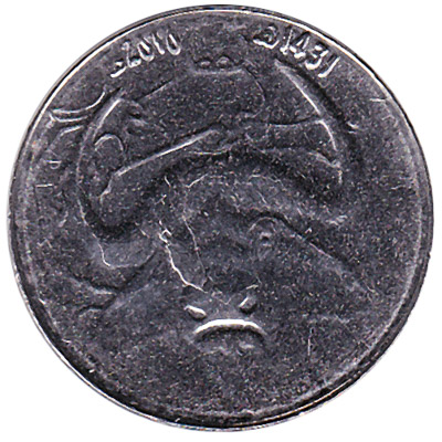 The Central Bank of Algeria issued Algarian Dinar coins in 15 different denominations, including this 1 Algerian Dinar coin (Buffalo). They are part of the Algerian Dinar coins series. The Central Bank of Algeria started issuing these 1 Algarian Dinar coins in 1992. They are currently still in circulation.