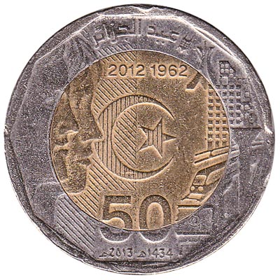 The Central Bank of Algeria issued Algarian Dinar coins in 15 different denominations, including this 200 Algerian Dinars coin (Independence). They are part of the Algerian Dinar coins series. The Central Bank of Algeria started issuing these 200 Algarian Dinar coins in 2012. They are currently still in circulation.
