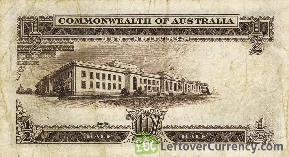 - Text: 1/2 Pound, 10/_, Commonwealth of Australia, Ten Shillings