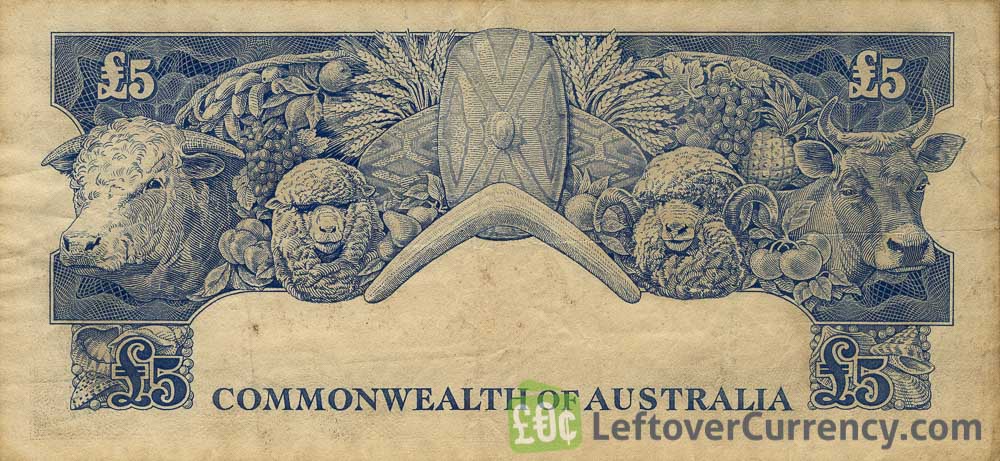 - Text: 5, Commonwealth of Australia, Five, Five Pounds, Pounds