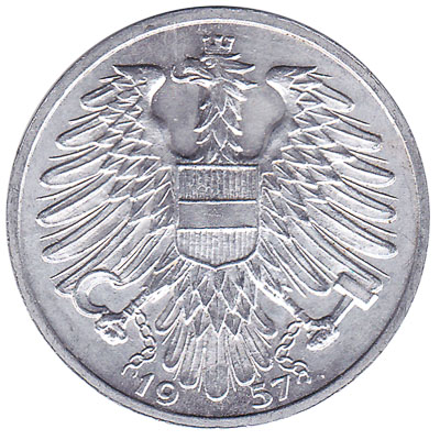 The Austrian Mint issued Austrian Schilling coins in 10 different denominations, including this 1 Austrian Schilling coin (aluminium). They are part of the Austrian Schilling coins series. The Austrian Mint started issuing these 1 Austrian Schilling coins in 1959. They were withdrawn from circulation in 2001.