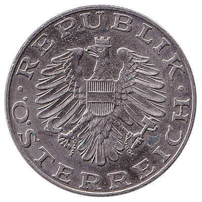 The Austrian Mint issued Austrian Schilling coins in 10 different denominations, including this 10 Austrian Schilling coin. They are part of the Austrian Schilling coins series. The Austrian Mint started issuing these 10 Austrian Schilling coins in 1974. They were withdrawn from circulation in 2002.