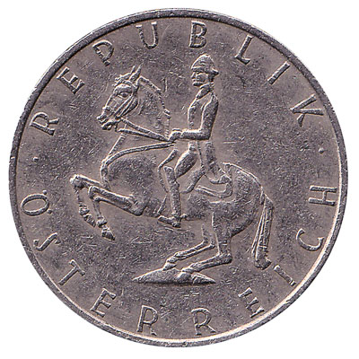 The Austrian Mint issued Austrian Schilling coins in 10 different denominations, including this 5 Austrian Schilling coin. They are part of the Austrian Schilling coins series. The Austrian Mint started issuing these 5 Austrian Schilling coins in 1968. They were withdrawn from circulation in 2002.