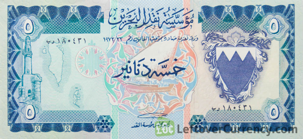 Repeat these steps for any other notes and coins you want to exchange. Complete checkout and get paid within 5 days of receiving your currencies. To exchange your Bahrain 5 DInars banknote (Second Issue) for cash: add it to your wallet now!