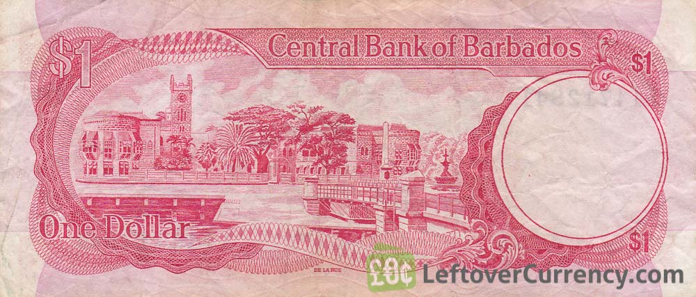 The Central Bank of Barbados issued Barbadian Dollar banknotes in 8 different denominations, including this 1 Barbados Dollar banknote (National Heroes Square). They are part of the withdrawn Barbadian Dollar banknotes series. The Central Bank of Barbados started issuing these 1 Barbadian Dollar banknotes in 1973. They were withdrawn from circulation in 1980.