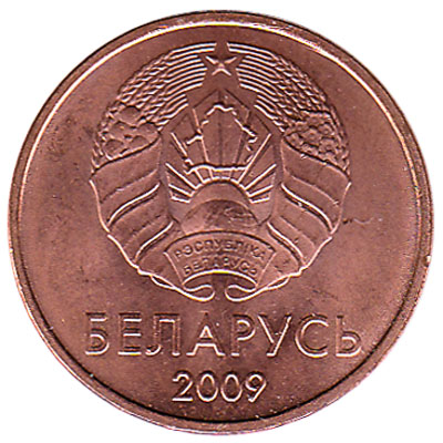 The National Bank of the Republic of Belarus issued Belarusian Ruble coins in 8 different denominations, including this 1 Kopek coin Belarus. They are part of the Belarusian Ruble coins series. The National Bank of the Republic of Belarus started issuing these 0.01 Belarusian Ruble coins in 2009. They are currently still in circulation.