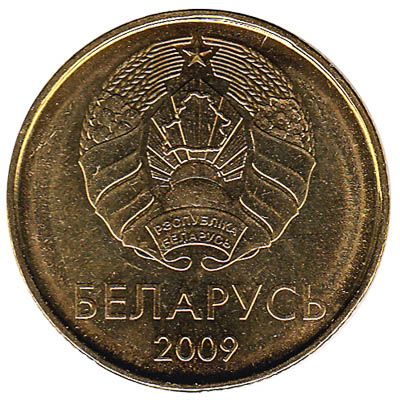 The National Bank of the Republic of Belarus issued Belarusian Ruble coins in 8 different denominations, including this 20 Kopeks coin Belarus. They are part of the Belarusian Ruble coins series. The National Bank of the Republic of Belarus started issuing these 0.2 Belarusian Ruble coins in 2009. They are currently still in circulation.