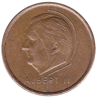 The Royal Belgian Mint issued Belgian Franc coins in 12 different denominations, including this 20 Belgian Francs coin (Albert II). They are part of the Belgian Franc coins series. The Royal Belgian Mint started issuing these 20 Belgian Franc coins in 1994. They were withdrawn from circulation in 2001.
