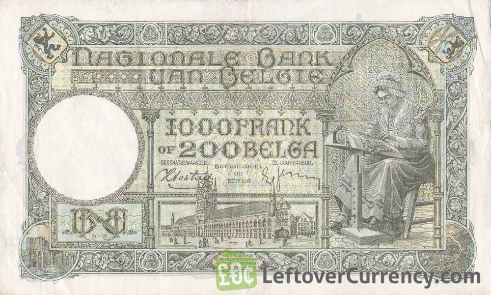 The National Bank of Belgium issued Belgian Franc banknotes in 11 different denominations, including this 1000 Belgian Francs 200 Belgas banknote (Série Nationale). They are part of the demonetized Belgian Franc banknotes series. The National Bank of Belgium started issuing these 1000 Belgian Franc banknotes in 1928. They were withdrawn from circulation in 1944.