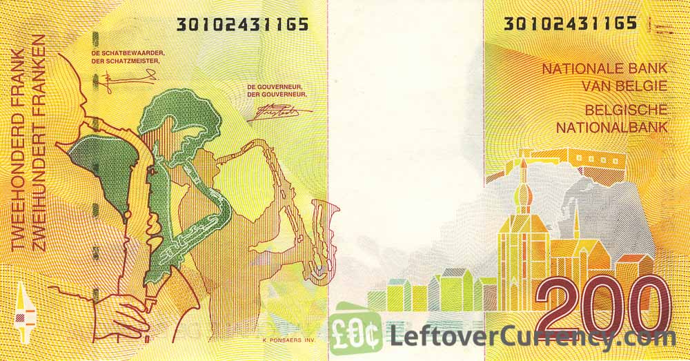 The National Bank of Belgium issued Belgian Franc banknotes in 12 different denominations, including this 200 Belgian Francs banknote (Adolphe Sax). They are part of the Belgian Franc banknotes series. The National Bank of Belgium started issuing these 200 Belgian Franc banknotes in 1995. They were withdrawn from circulation in 2002.