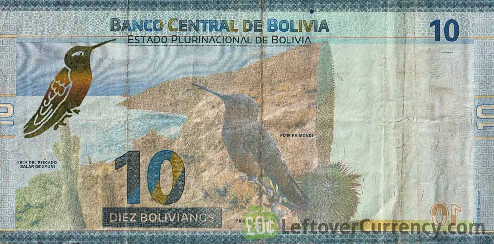 - Text: Apiaguaiki Tupa, Banco Central De Bolivia, Caverna De Umajalanta Tordtoro, Diez Bolivianos, Estado Plurinacional De Bolivia, Eustaquio Mendes El Moto Mendez, Isla Del Pescado Salar De Uyuni, Jose Santos Vargas El Tambor Vargas, Picaflor Gigante, Puya Raimondi, 10