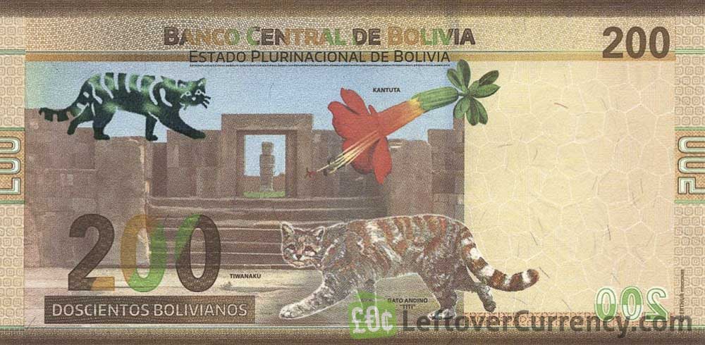 - Text: Banco Central De Bolivia, Bartolina Sisa, Casa De La Liberato, Estado Purinacional De Bolivia, Gato Andino, Kantuta, Tiwanaku, Tupak Katari, 200, Simón Bolívar