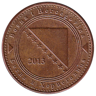 The Central Bank of Bosnia and Herzegovina issued Bosnia and Herzegovina convertible mark coins in 8 different denominations, including this 10 Feninga Bosnian Convertible Mark coin. They are part of the Bosnia and Herzegovina convertible mark coins series. The Central Bank of Bosnia and Herzegovina started issuing these 0.1 Bosnia and Herzegovina convertible mark coins in 1998. They are currently still in circulation.