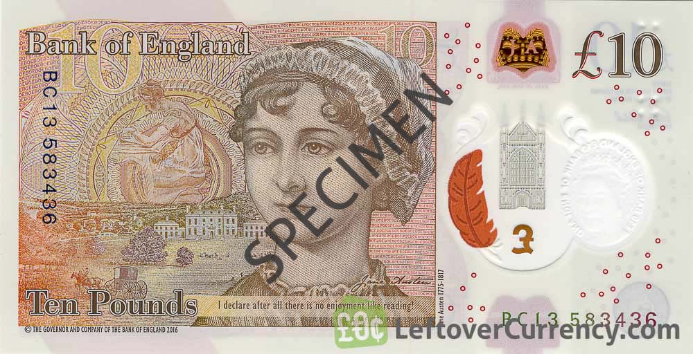 Repeat these steps for any other notes and coins you want to exchange. Complete checkout and get paid within 5 days of receiving your currencies. To exchange your Bank of England 10 Pounds Sterling polymer banknote (Jane Austen) for cash: add it to your wallet now!