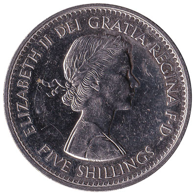 - Text: 1960, Elizabeth II DEI GRATIA REGINA F.D., Five Shillings
