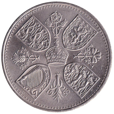 To commemorate the coronation of Queen Elizabeth II in 1953 this crown coin was issued. It has a value of Five Shillings, the equivalent of 25 pence post-decimalisation. The Coronation Crown coin weighs 28.3 grams and measures 38mm across.