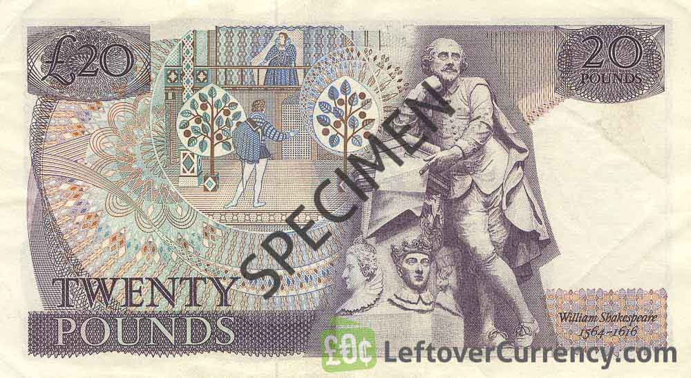 Repeat these steps for any other notes and coins you want to exchange. Complete checkout and get paid within 5 days of receiving your currencies. To exchange your Bank of England 20 Pounds Sterling banknote (William Shakespeare) for cash: add it to your wallet now!