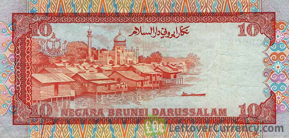 The Monetary Authority of Brunei Darussalam issued Brunei Dollar banknotes in 9 different denominations, including this 10 Brunei Dollars banknote series 1989. They are part of the withdrawn Brunei Dollar banknotes series. The Monetary Authority of Brunei Darussalam started issuing these 10 Brunei Dollar banknotes in 1989. They were withdrawn from circulation in 1997.
