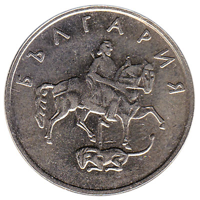 The 20 Stotinki piece from Bulgaria is the equivalent of 0.20 Bulgarian Lev. It features the Madara horseman, piercing a lion with his spier. The coin has a diameter of 20.5mm and weighs 4 grams.