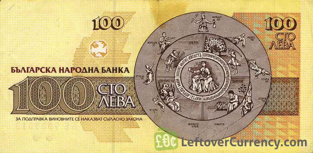 The Bulgarian National Bank issued Bulgarian Lev banknotes in 17 different denominations, including this 100 old Leva banknote Bulgaria. They are part of the withdrawn Bulgarian Old Lev banknotes series. The Bulgarian National Bank started issuing these 100 Bulgarian Lev banknotes in 1991. They were withdrawn from circulation in 1999.