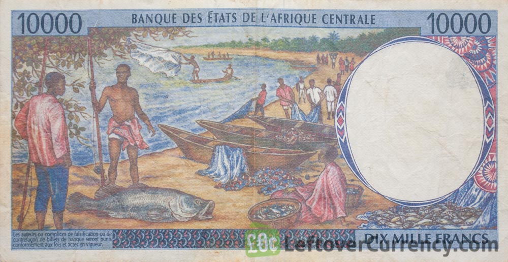The Bank of Central African States issued CFA franc Central Africa banknotes in 6 different denominations, including this 10000 francs banknote Central African CFA (1994 to 2002 issue). They are part of the withdrawn Central African CFA franc banknotes series. The Bank of Central African States started issuing these 10000 CFA franc Central Africa banknotes in 1994. They were withdrawn from circulation in 2002.