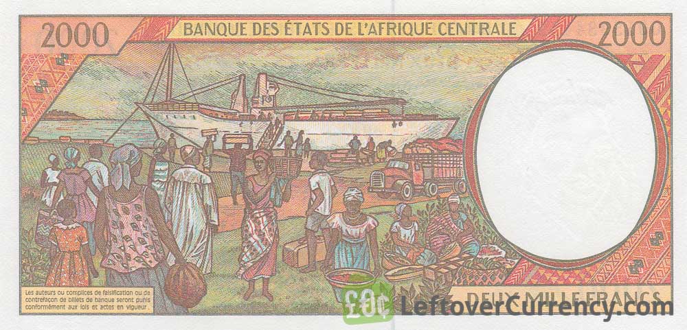 The Bank of Central African States issued CFA franc Central Africa banknotes in 6 different denominations, including this 2000 francs banknote Central African CFA (1993 to 2002 issue). They are part of the withdrawn Central African CFA franc banknotes series. The Bank of Central African States started issuing these 2000 CFA franc Central Africa banknotes in 1993. They were withdrawn from circulation in 2002.