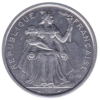 The Institut d’émission d’outre-mer issued CFP franc French Polynesia coins in 8 different denominations, including this 2 CFP francs coin (Polynésie Française). They are part of the CFP franc coins series. The Institut d’émission d’outre-mer started issuing these 2 CFP franc French Polynesia coins in 1965. They are currently still in circulation.