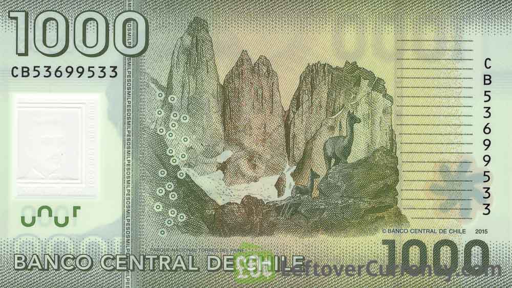 The lowest value banknote of Chile is the 1000 Pesos banknote. On the front side of the CLP$1000 banknote is the portrait of war hero Ignacio Carrera Pinto. The back side features the snowy mountain peaks of Patagonia.