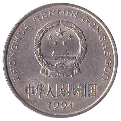 The People's Bank of China issued Chinese Yuan coins in 6 different denominations, including this 1 Chinese Yuan coin (National Emblem). They are part of the Chinese Yuan Renminbi coins series. The People's Bank of China started issuing these 1 Chinese Yuan coins in 1991. They were withdrawn from circulation in 1999.