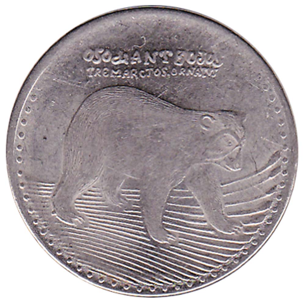 The coin of $50 pesos is Colombia’s lowest value coin from the latest ‘fauna and flora’ coin series. The 50 pesos piece features an image of a spectacled bear or ‘Andean bear’. It is the only bear species found in South America, and it served as inspiration for the beloved fictional character in children’s literature, Paddington Bear.