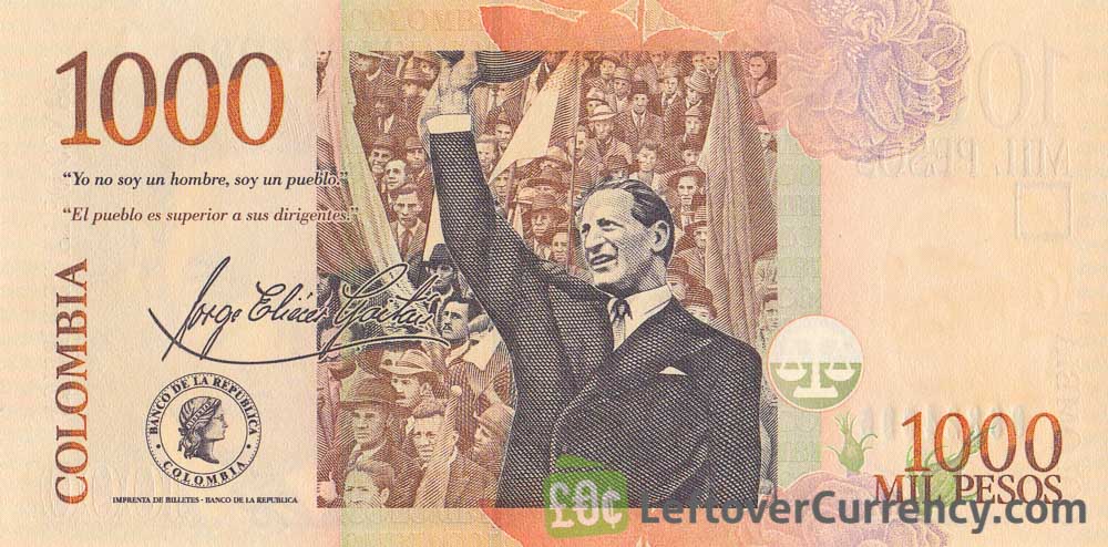 Do you have a 1000 Colombian Pesos banknote (Jorge Eliécer Gaitán)? Here's how to exchange it for cash: