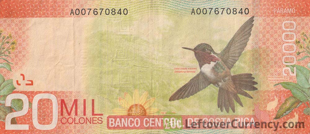Do you have a 20000 Costa Rican Colones paper banknote (Chispita hummingbird)? Here's how to exchange it for cash: