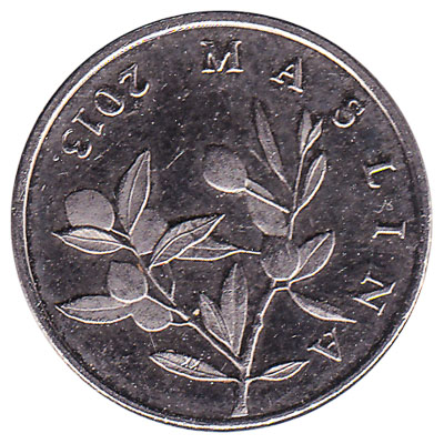 The coin of 20 lipa has a diameter of 18.5mm and a weight of 2.9 grams. On the nickel plated steel coin, the inscription reads ‘Republika Hrvatska – Maslina Olea Europeaea’.