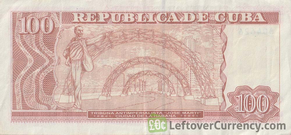 An image of Carlos Manuel de Céspedes del Castillo, a Cuban revolutionary hero and First President of Cuba, is featured on the front of this 100 Cuban Pesos bill. Turn over this Cien Pesos banknote, and you’ll see the Anti-Imperialist Tribune “José Martí”. It is named after José Martí, a national hero of Cuba who played a vital role in the country’s fight for independence and is a venue used to host large-scale political and cultural events.