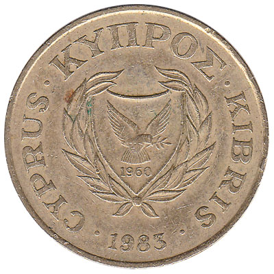 The Central Bank of Cyprus issued Cypriot Pound coins in 7 different denominations, including this 20 cents coin Cyprus (pied wheatear bird). They are part of the Cypriot Pound coins series. The Central Bank of Cyprus started issuing these 0.2 Cypriot Pound coins in 1983. They were withdrawn from circulation in 1988.