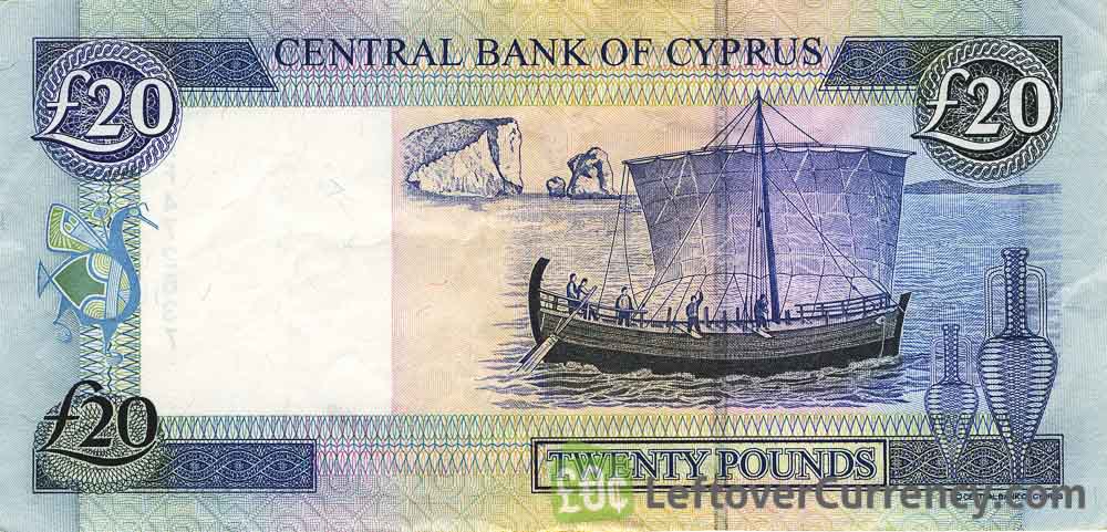 - Text: Central Bank of Cyprus, Eikoei Aipee, Kentpikh Tpaneza The Kynpoy, Kibris Merkez Bankasi, Twenty Pounds, Yirmi Lira