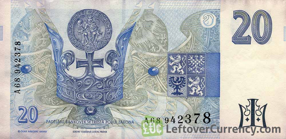 - Text: 20, Ceska Narodni Banka, Dvacet Korun Ceskych