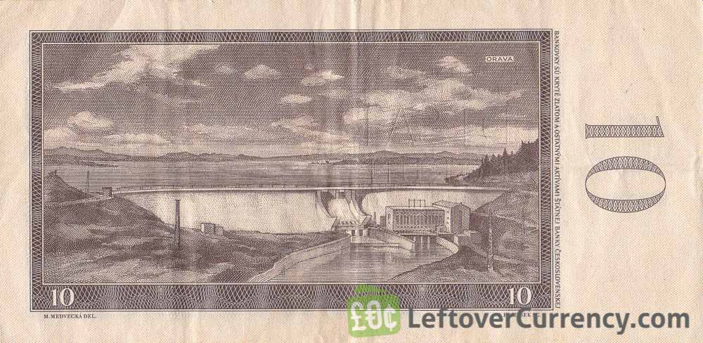 The State Bank of Czechoslovakia issued Czech Koruna banknotes in 7 different denominations, including this 10 Czechoslovak Korun banknote 1960 (Orava Dam). They are part of the obsolete Czechoslovak korun banknotes series. The State Bank of Czechoslovakia started issuing these 10 Czech Koruna banknotes in 1960. They were withdrawn from circulation in 1985.