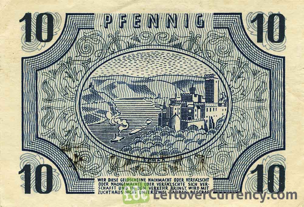Repeat these steps for any other notes and coins you want to exchange. Complete checkout and get paid within 5 days of receiving your currencies. To exchange your 10 Pfennig banknote Germany (Rheinland-Pfalz 1947) for cash: add it to your wallet now!