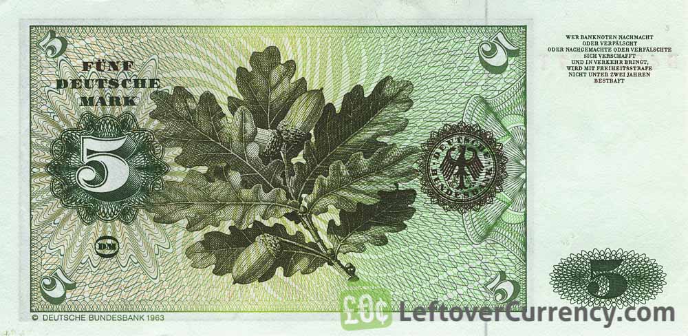 - Text: 5, Banknote, Deutsche Bundesbank, Funf Deutsche Mark