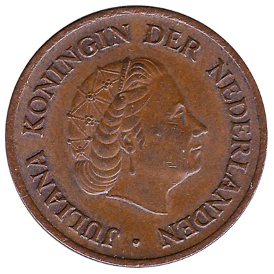 The De Nederlandsche Bank issued Dutch Guilder coins in 7 different denominations, including this 5 cent coin (Juliana). They are part of the Dutch Guilder coins series. The De Nederlandsche Bank started issuing these 0.05 Dutch Guilder coins in 1950. They were withdrawn from circulation in 2001.