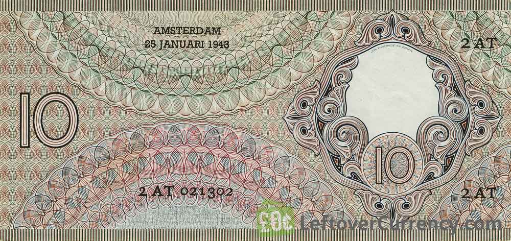 The Nederlandsche Bank issued Dutch Guilder banknotes in 11 different denominations, including this 10 Dutch Guilders banknote (Staalmeester). They are part of the Dutch Guilder banknotes series. The Nederlandsche Bank started issuing these 10 Dutch Guilder banknotes in 1943. They were withdrawn from circulation in 1945.