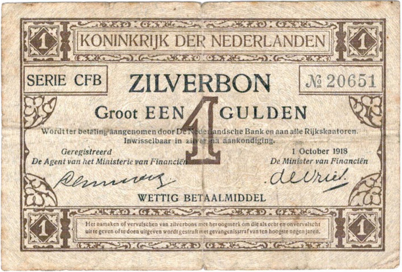 Do you have a Zilverbon 1 Dutch Guilder banknote WWI? Here's how to exchange it for cash: