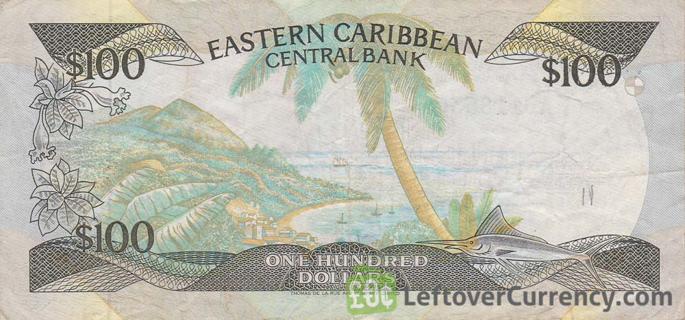 The Eastern Caribbean Central Bank issued Eastern Caribbean dollar banknotes in 6 different denominations, including this 100 Eastern Caribbean dollars banknote (Swordfish). They are part of the withdrawn Eastern Caribbean Dollar banknotes series. The Eastern Caribbean Central Bank started issuing these 100 Eastern Caribbean dollar banknotes in 1985. They were withdrawn from circulation in 1993.
