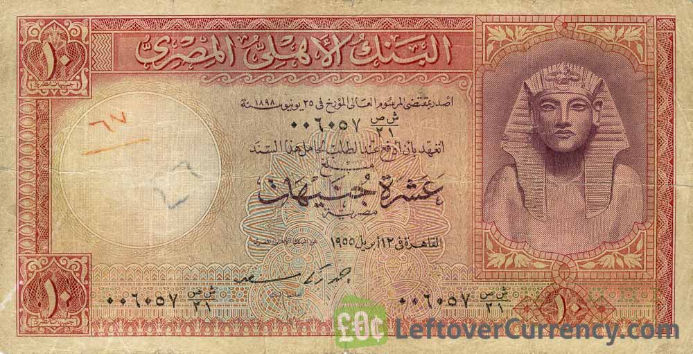 - Text: 10, National Bank of Egypt, Ten Egyptian Pounds