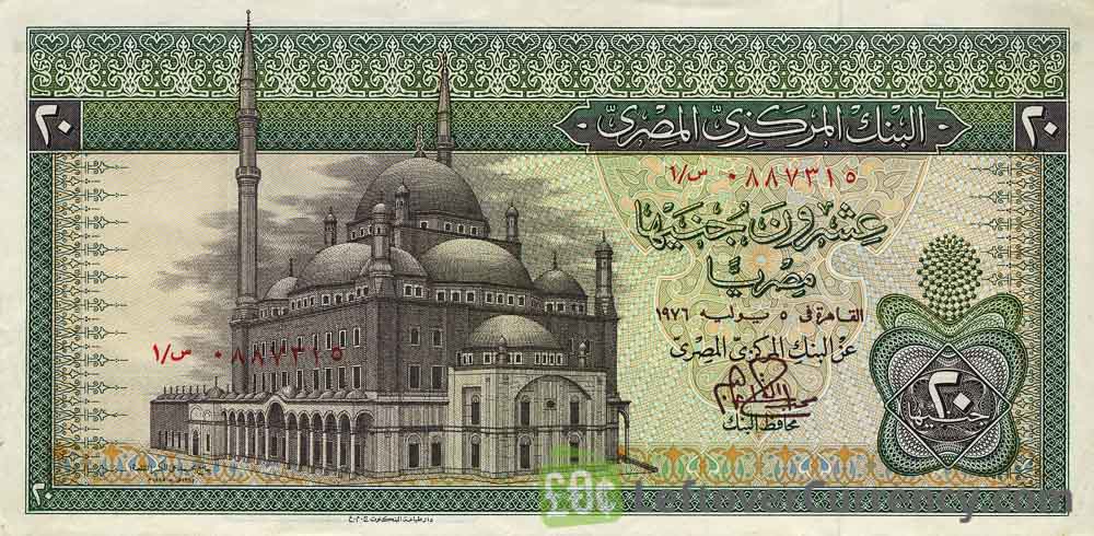 - Text: 20, Central Bank of Egypt, Twenty Pounds