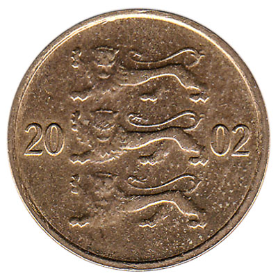 The Eesti Pank issued Estonian Kroon coins in 7 different denominations, including this 10 Senti coin Estonia. They are part of the Estonian Krooni coins series. The Eesti Pank started issuing these 0.1 Estonian Kroon coins in 1991. They were withdrawn from circulation in 2010.
