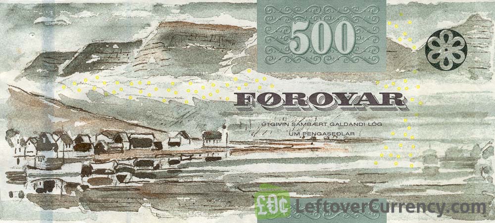 - Text: 500, 500 Kronur, Fimm Hundrad Kronur, Foroyar