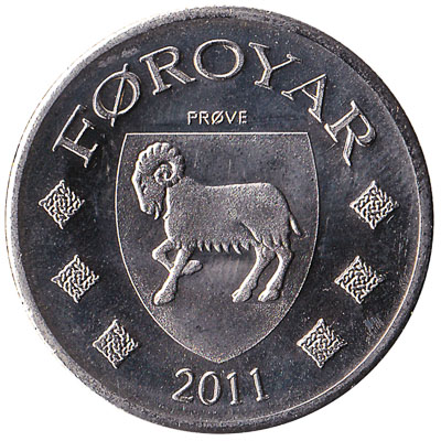 - Text: 2011, 5 Krónur, Foroyar, PRØVE